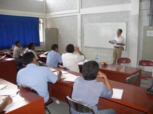 我々専門家は、3大学の先生方による短期研修をバックアップすることに加えて、基礎学力(英語、数学、物理、基礎工学)の向上を担当して、教官を対象にそれぞれの授業を実施しました(写真8)。また、専門家の仕事として、工学部の運営方法の改善、カリキュラム、シラバスの整備に対する助言などを実施し、授業の質を高めるための学生による授業評価の導入などが実施されました。